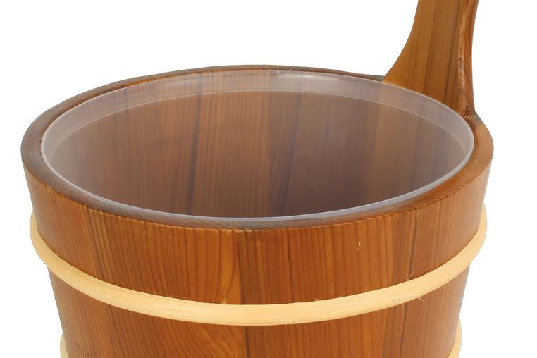Ein zeitloser Sauna-Aufgusseimer für Deine Sauna. Aus dunkem Kiefernholz gefertigt und einem praktischen Plastikeinsatz bietet der Eimer eine lange Beständigkeit. Mit einem Holzgriff aus Kiefer hat er ein schlicht-elegantes Erscheinungsbild. Der Aufgusseimer lässt sich mit 4L Wasser auffüllen, oder je nach Belieben mit einem im Eimer vorbereiteten duftenden Aufgussmittel.