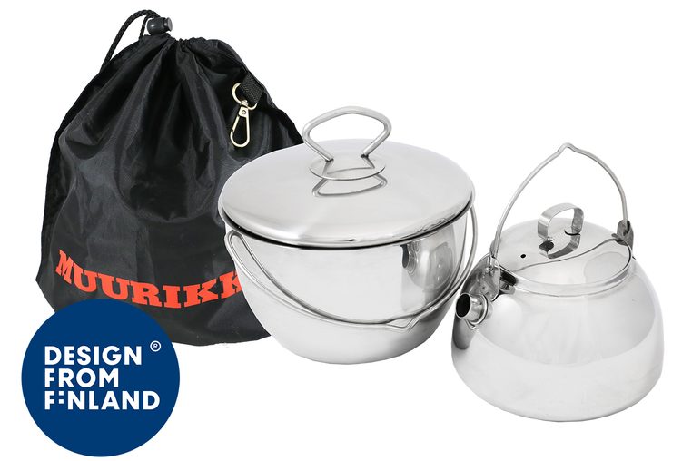 Wer gerne Zeit in der Natur verbringt und sich bei Kälte oder nach einer ausgedehnten Tour stärken möchte, kommt um eine praktische Outdoor-Kochausrüstung nicht herum. Das Muurikka Outdoor-Set besticht in Sachen Transport durch seineLeichtigkeit: Topf & Kessel wiegen zusammen weniger als 1 kg.