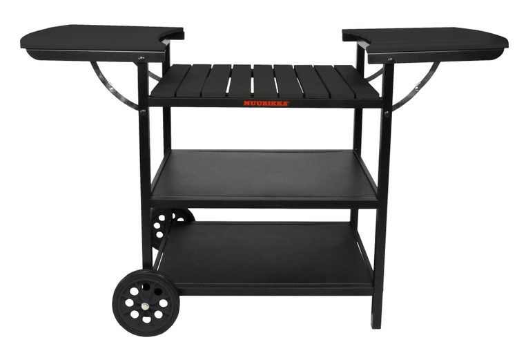 - 1x MUURIKKA Grill-Wagen / Sommer-Küche Maxi mit Rollen und Seitentischen (Schwarz)
