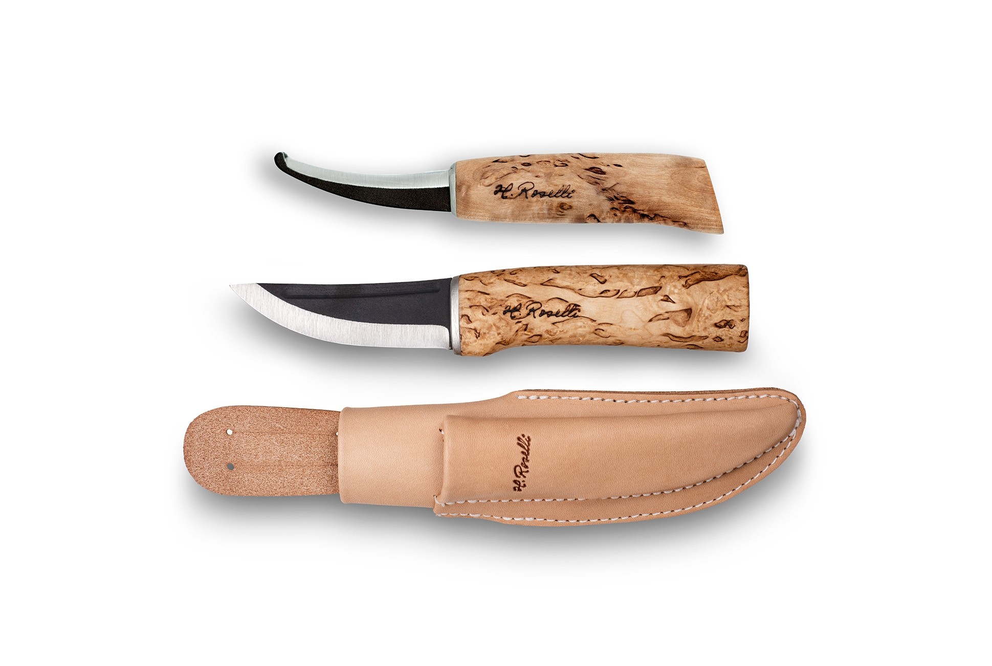 Um die außergewöhnliche Schärfe der Kohlenstoffstahlklingen zu erhalten, empfiehlt sich regelmäßiges Nachschärfen und eine schonende Handhabung. Die Griffe sollten bei Bedarf mit Leinöl gepflegt werden, um die Maserbirke in bestem Zustand zu halten. Bewahre die Messer stets im trockenen Zustand auf