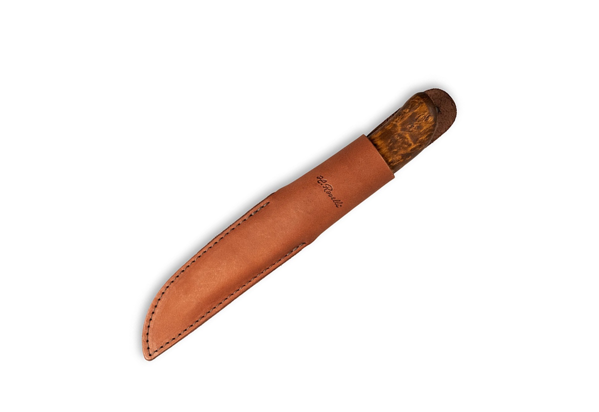 Dank des griffigen Griffs aus finnischer Maserbirke, geölt mit natürlichem Leinöl, liegt das Messer sicher und angenehm in der Hand – auch bei Nässe. Jede Maserung ist einzigartig und macht dein Messer zu einem echten Unikat. Geliefert wird das Filetiermesser in einer handgefertigten Lederscheide aus pflanzlich gegerbtem finnischem Leder – elegant, sicher und langlebig.